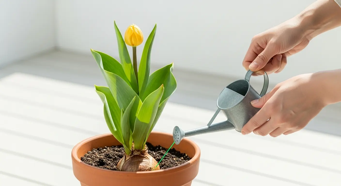 チューリップの球根を植えっぱなしにする上で、最も重要なコツは夏の間の水やり管理です。結論から言うと、チューリップが休眠期に入る7月から9月頃は、水やりを完全にストップしてください。