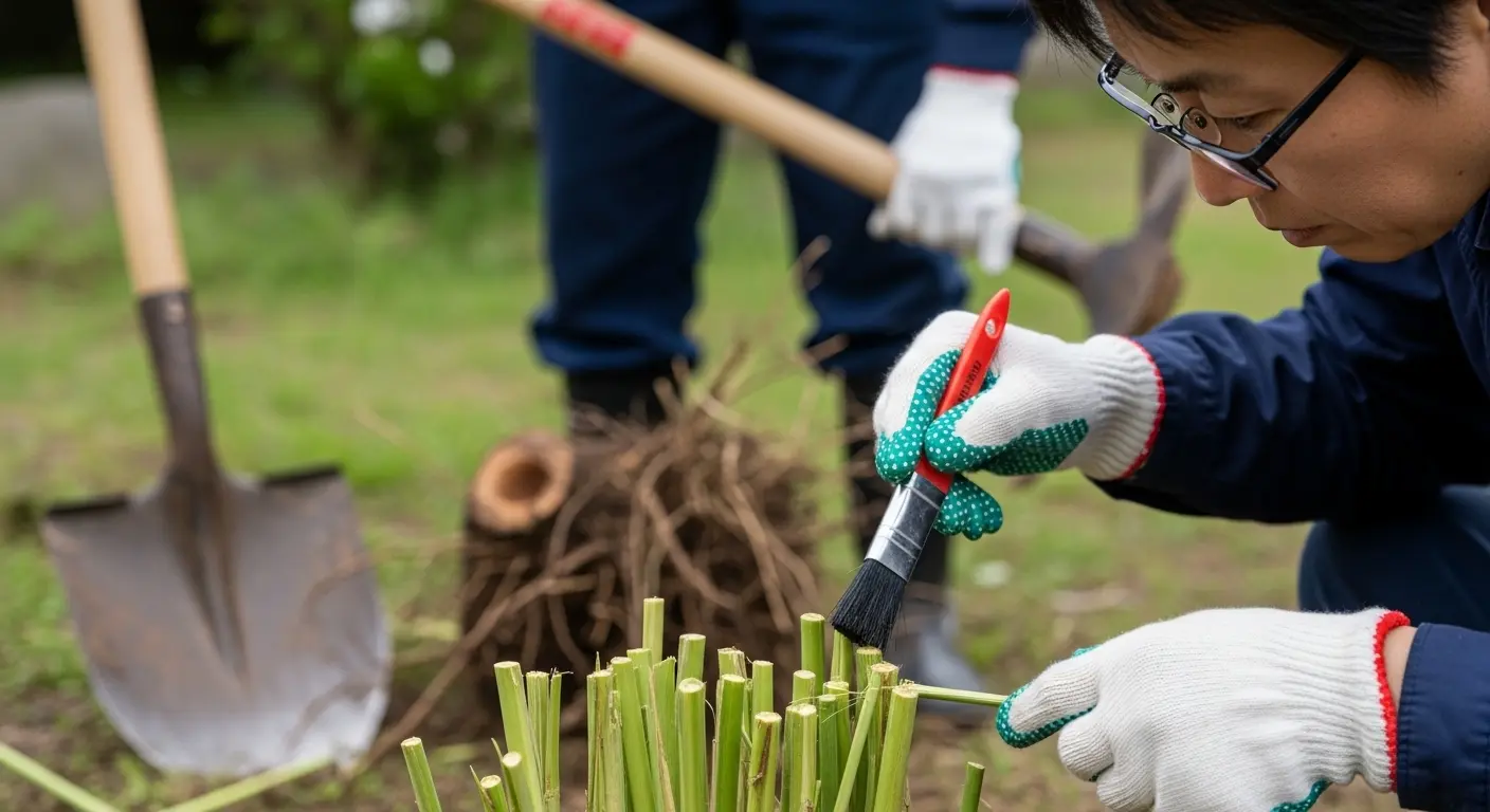 一つは、地下で着実に勢力を広げる「地下茎」です。土の中で網の目のように広がるこの地下茎は非常に強靭で、数年も経つと木の幹のように硬く太くなります。やっかいなことに、ほんの数センチのかけらが土の中に残っているだけで、そこから再び芽を出して再生するゾンビのような生命力を持っています。中途半端に掘り起こそうとすると、地下茎を細かく分断してしまい、かえって株を増やす手助けをしてしまうことさえあるのです。