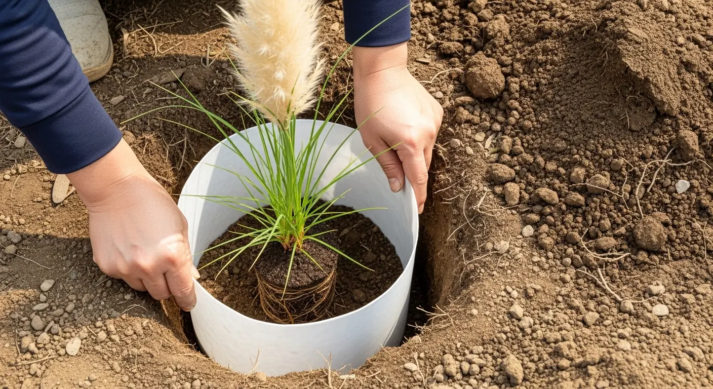 「どうしても地植えでススキを楽しみたいけれど、やっぱり地下茎の広がりが心配…」という方のために、最終防衛ラインとも言える植え方をご紹介します。それは、物理的な壁で根の広がりを強制的に食い止める方法です。