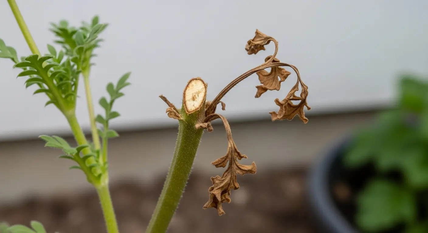 - 土が乾いていないのに、株全体がしおれてぐったりしている。