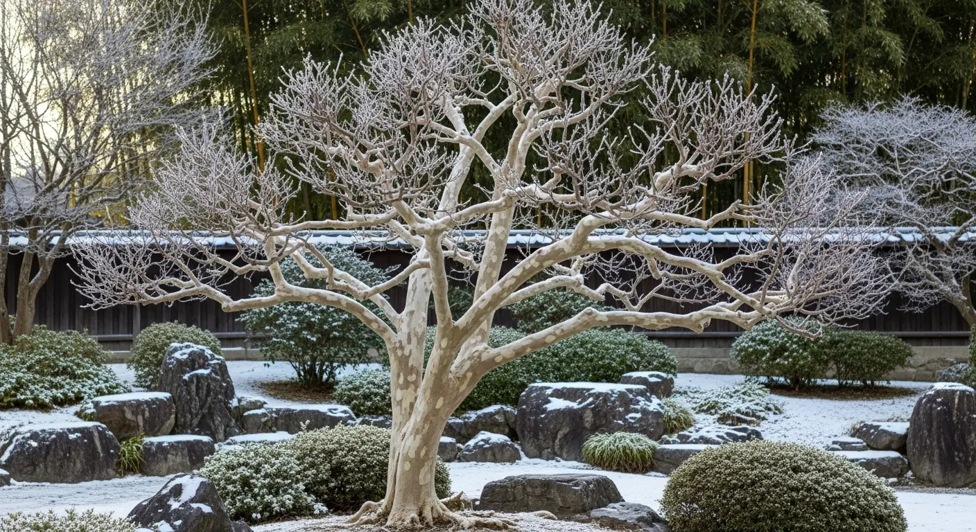 花が終わった落葉期でも、サルスベリは私たちを楽しませてくれます。成長するにつれて古い樹皮が剥がれ落ち、現れる白く滑らかな幹肌は、冬の庭で独特の存在感を放ちます。この幹の美しさに惹かれてサルスベリを選ぶ人も少なくありません。