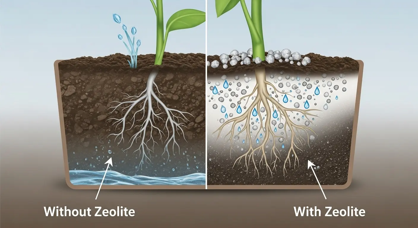 前述の通り、ゼオライトは「保水性」と「保肥性」を同時に高めるという、一見矛盾したような優れた特性を持っています。