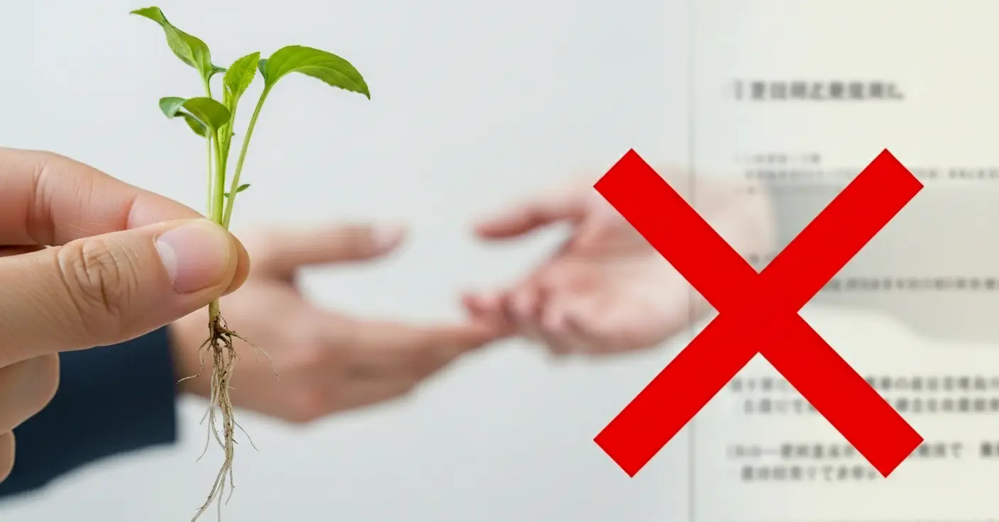 これは、私たちが音楽CDを買っても無断でコピーして配れないのと同じで、正規に購入したクラピアの苗であっても、許可なく増殖させて他人に譲渡(販売はもちろん、無償で分けることも含む)する行為は法律で禁止されています。具体的には、以下のような行為が違反となります。