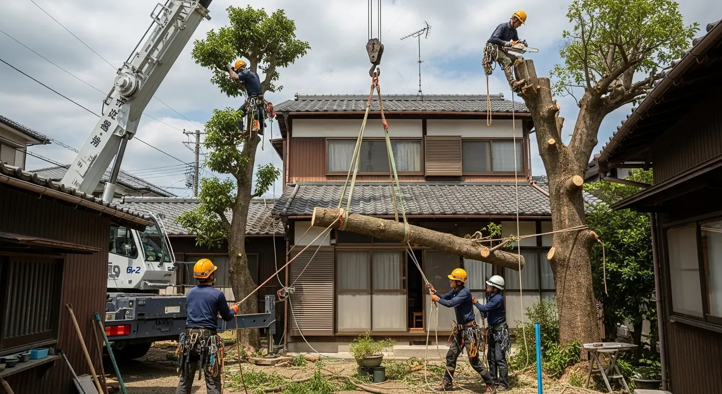 これまで挙げてきた7つの理由が積み重なった結果、最終的に訪れるのが「高額な伐採費用」という現実です。成長しすぎ、手に負えなくなったねむの木を撤去するには、もはやDIYで対応できる範囲を超えています。