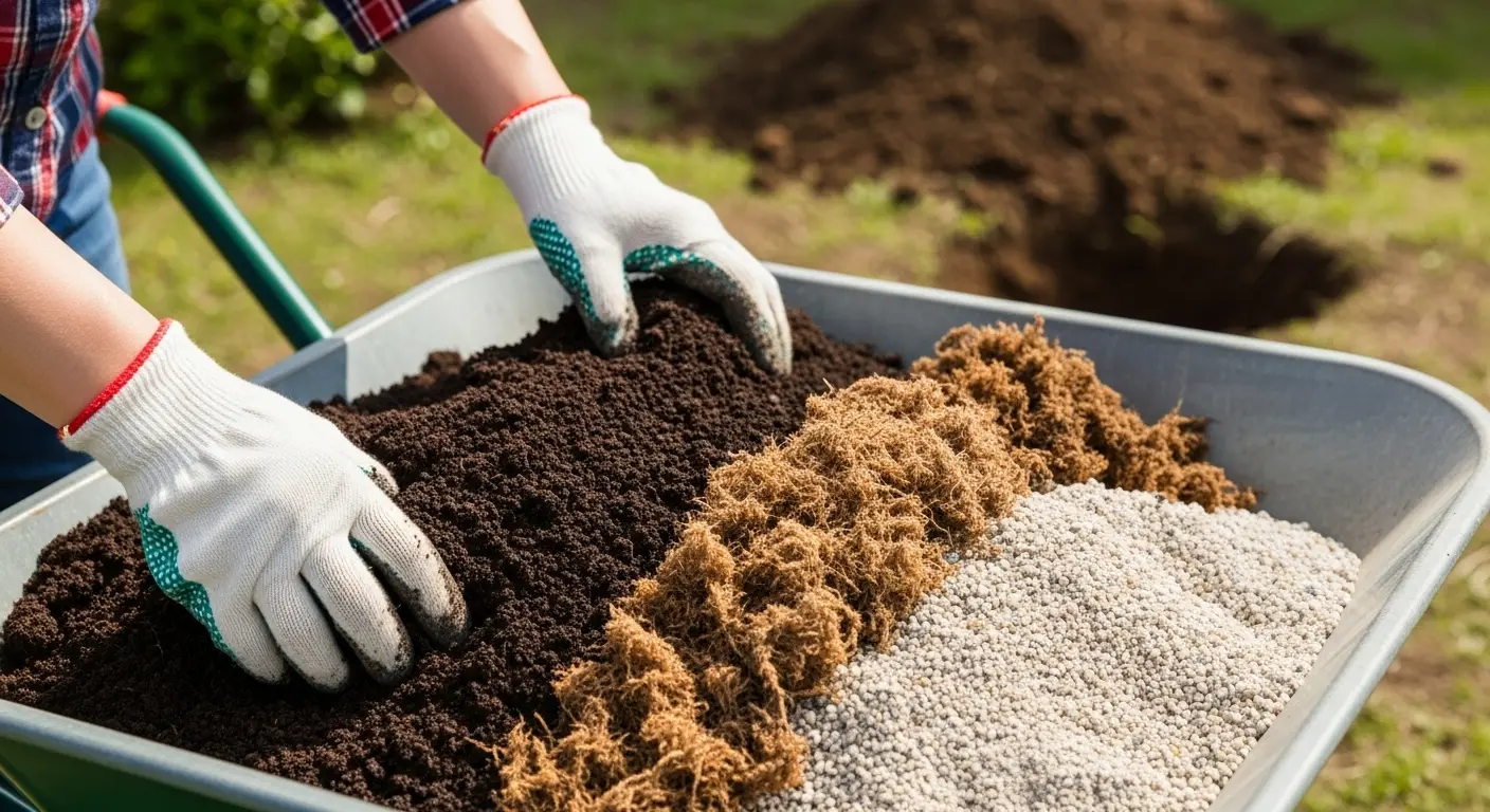 これらの用土を、掘り上げた土に対して、ピートモスを2~3割、鹿沼土を2割、腐葉土を3割程度を目安に混ぜ込みます。元の土が粘土質で固い場合は鹿沼土の割合を増やし、砂質で水はけが良すぎる場合はピートモスや腐葉土を多めにすると良いでしょう。