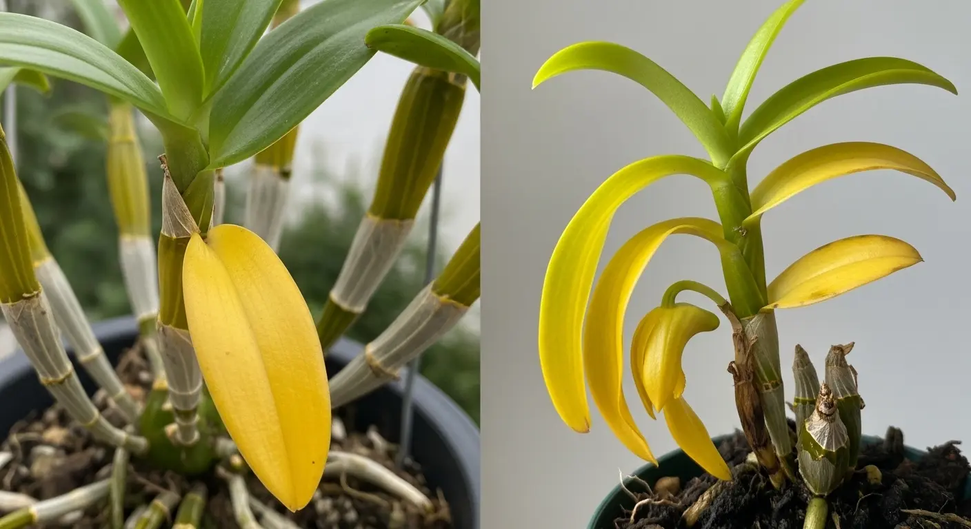 これは多くの場合、自然な生理現象です。特に主流のノビル系は落葉性で、秋から冬にかけて古いバルブの葉が黄色くなり、やがて落ちていきます。これは株が冬の休眠に入る準備をしているサインであり、全く心配いりません。むしろ、健全に生育サイクルが進んでいる証拠です。
