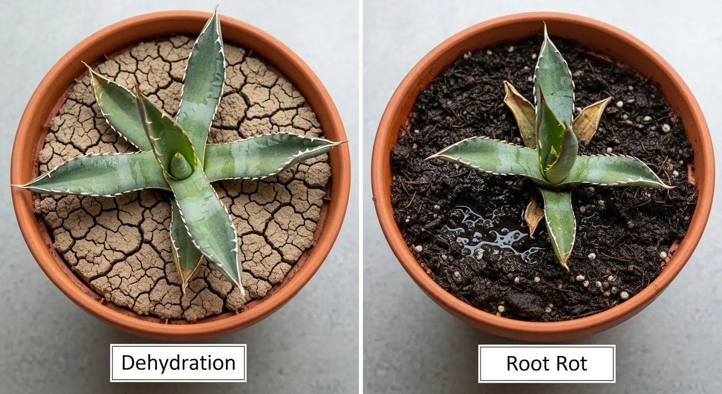 アガベの栽培で初心者が最も陥りやすい、そして最も致命的な失敗が、「根腐れ」の症状を「水切れ」と勘違いしてしまうことです。なぜなら、地上部に見える症状が驚くほど似ているからです。