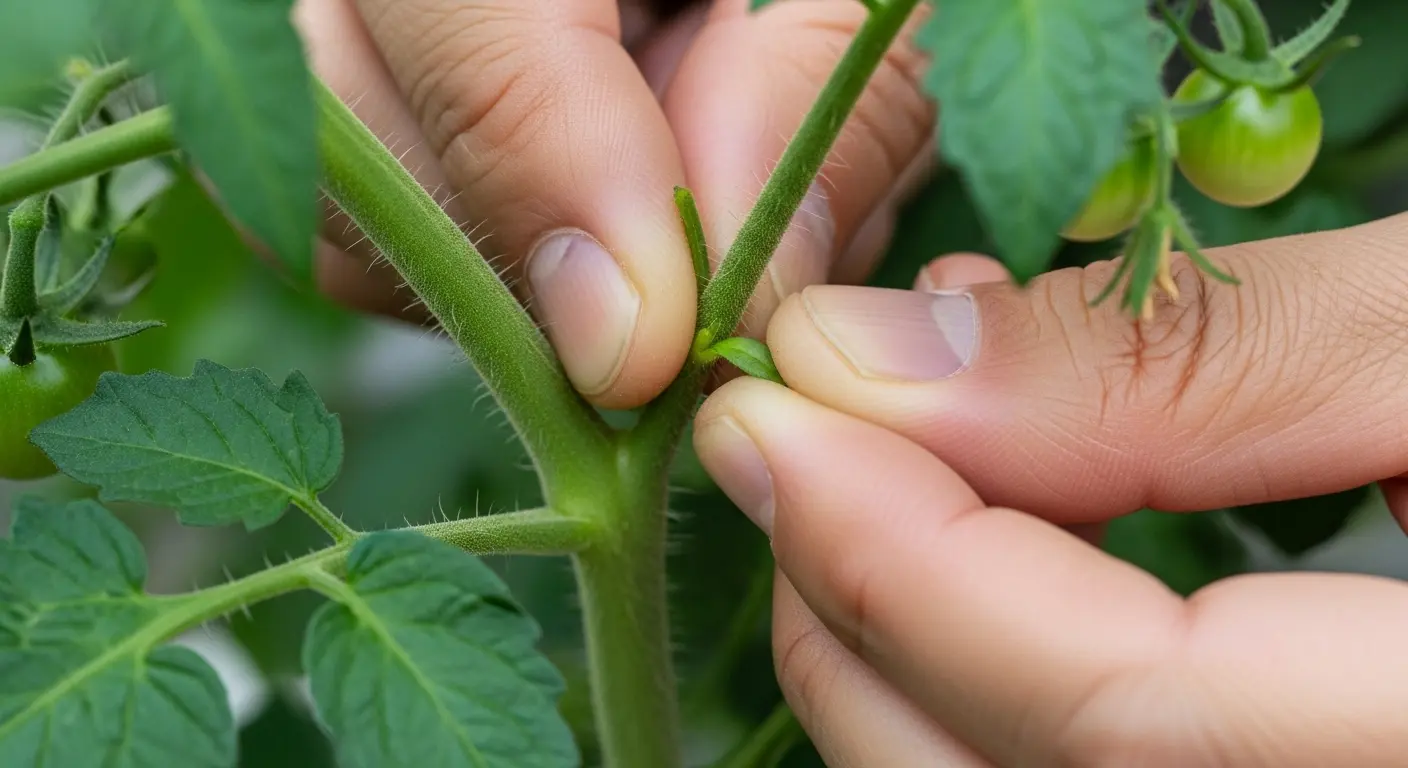 ミニトマトの栽培において、日々の管理で最も重要と言っても過言ではないのが「わき芽かき」です。わき芽とは、主茎と葉の付け根のV字部分から生えてくる新しい芽のこと。これを放置すると、どんどん枝葉が茂ってしまい、栄養が分散して実が大きくならなかったり、風通しが悪くなって病気の原因になったりします。わき芽かきは、わき芽が3~5cm程度の小さいうちに、手で摘み取るのが基本です。ハサミを使うと切り口から病原菌が侵入するリスクがあるため、晴れた日の午前中に手でポキッと折り取るのが最も安全で確実です。この作業は、最低でも週に1回は行い、株全体の風通しを常に良好に保ちましょう。そして、収穫量をさらに増やしたい中級者以上の方におすすめなのが「2本仕立て」という応用技術です。これは、一番花(第一花房)のすぐ下から出る勢いの良いわき芽を1本だけ残し、主茎と同じように育てていく方法です。これにより、収穫の柱が2本になり、収穫量が1.5倍ほどに増えることが期待できます。ただし、栄養が分散するため、後述する追肥を通常よりもしっかりと行う必要があります。