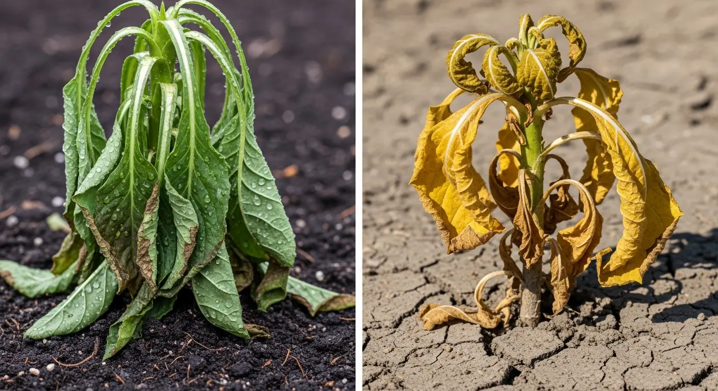 一方で、より深刻なのが「水のやりすぎ(過多)」による根腐れです。常に土が湿っていたり、受け皿に水が溜まったままだったりすると、根が呼吸できずに腐ってしまいます。根が腐ると、植物は水分や養分を吸い上げられなくなります。その結果、皮肉なことに「水不足」と同じような症状、つまり葉が黄色くなったり、元気がなくなったりするのです。