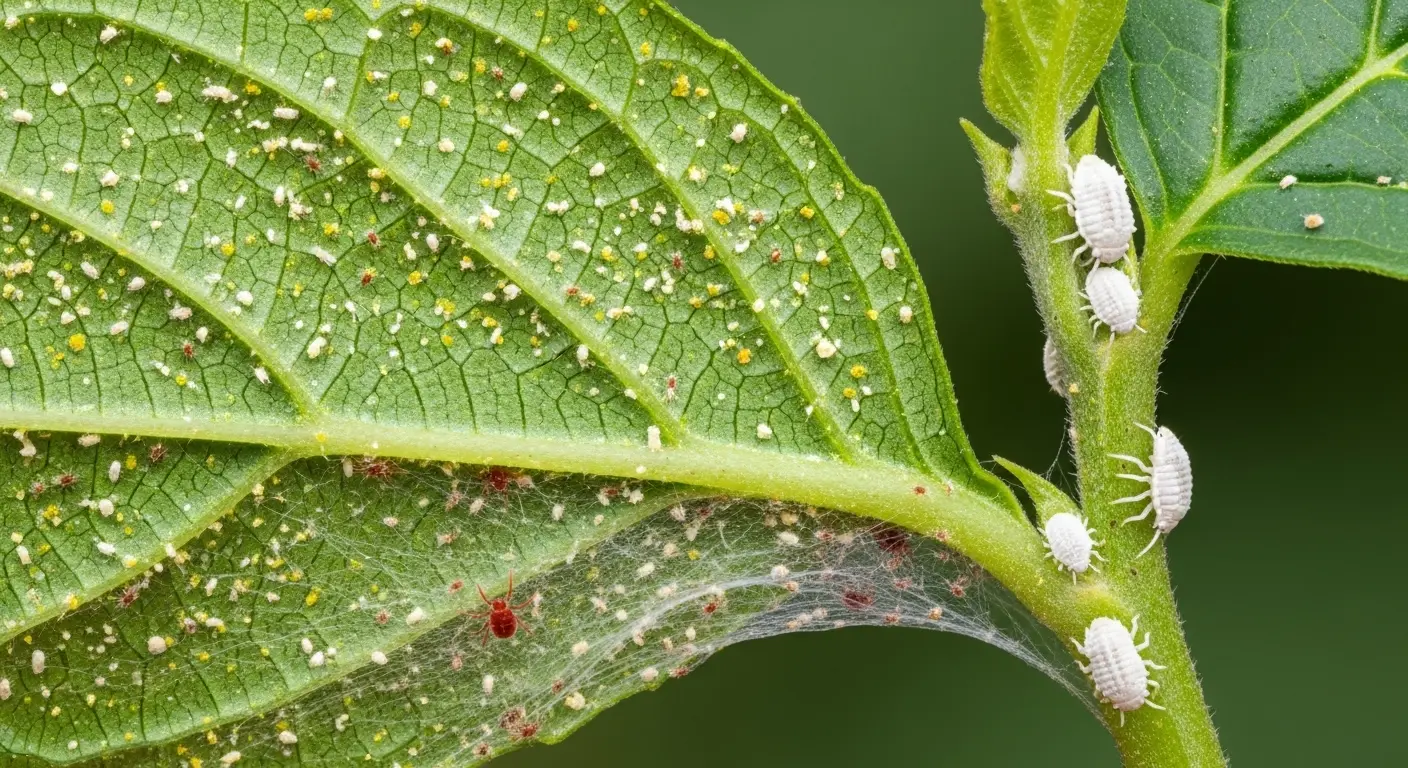 害虫による黄変は、水やりや日照不足による「全体的な変色」とは異なり、「斑点」や「黒いスス」といった特徴的なサインを伴うのが見分けるポイントです。