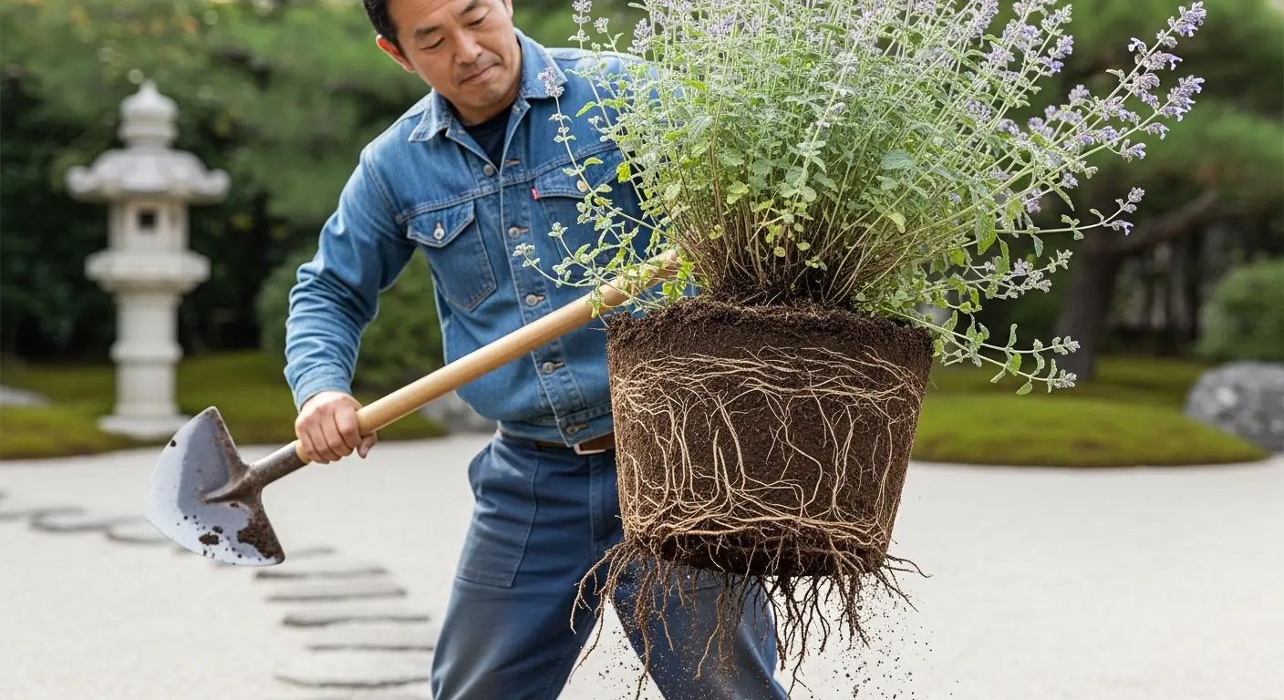 もしキャットミントが手に負えないほど増えすぎ、残念ながらすべてリセット(除去)したいと決断した場合、どうすればよいでしょうか。まず思い出してほしいのは、キャットミントはあのしつこいミント(ハッカ属)とは違うということです。ミントの除去作業は、地下30cmほどを広範囲に掘り返し、地下茎の破片一つ残さないよう徹底的に取り除く、まさに格闘とも言える作業です。