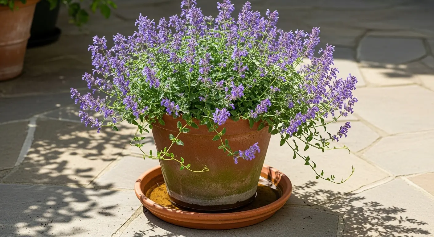 「キャットミントは好きだけれど、地植えで増えすぎるのは絶対に避けたい」という方には、「鉢植え(はちうえ)」での管理が最も確実な方法です。鉢という物理的な枠で根の広がりを制限できるため、大株化を防げます。また、こぼれ種が地面に落ちるのも防ぎやすくなります。