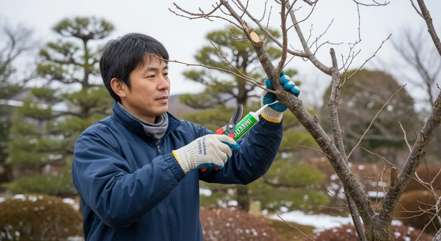 - 剪定の適期は、葉が落ちた後の休眠期(11月~3月)である