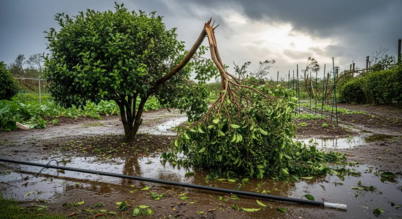 ティーツリーのデメリットとして注意すべきは、根が浅く広がる傾向があることです。前述の通り、剪定をせずに樹高が高くなると、頭(樹冠部)ばかりが大きくなり、それを支える根系とのバランスが悪くなります。その結果、強い台風や暴風雨が来た際に、風の力をまともに受けて木全体が根元から倒れてしまう「倒木」のリスクを抱えることになります。