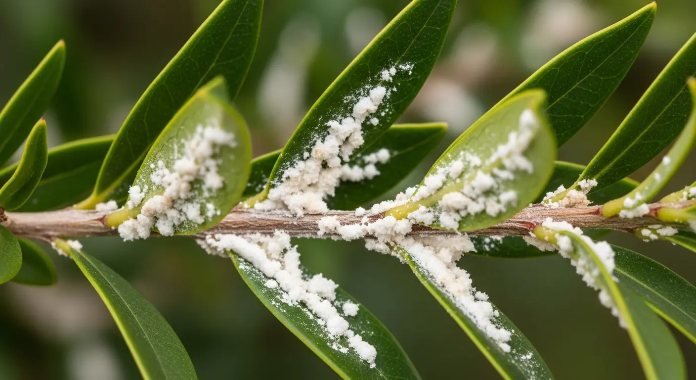 • カイガラムシ:風通しが悪いと発生します。枝に白く付着し、樹液を吸います。