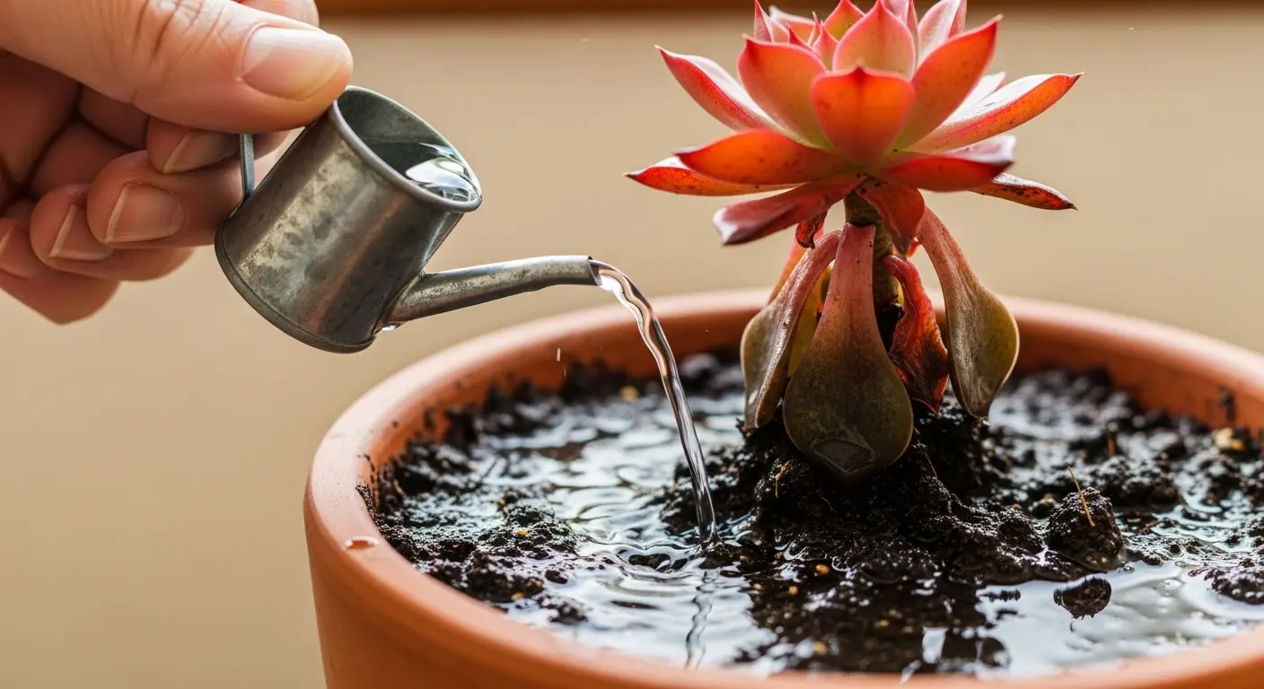 徒長の二つ目の大きな原因は、「水のやり過ぎ」です。多肉植物は葉や茎に水分を蓄える能力が高いため、頻繁な水やりは必要ありません。しかし、水の管理を間違えると、徒長だけでなく、より深刻な「根腐れ」を引き起こす可能性もあります。