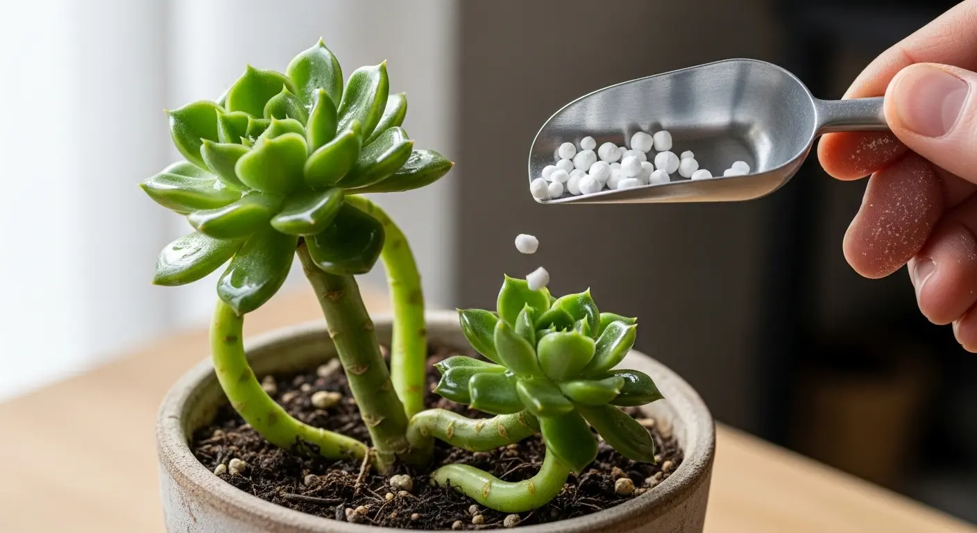 植え替えの際に、多肉植物用の土に含まれている「元肥(もとごえ)」だけで十分です。もし追加で肥料を与えたい場合でも、生育期である春と秋に、規定よりもかなり薄めた液体肥料を2週間に1回程度与えるだけで問題ありません。夏と冬の休眠期に肥料を与えるのは、根を傷める原因にもなるため絶対に避けましょう。