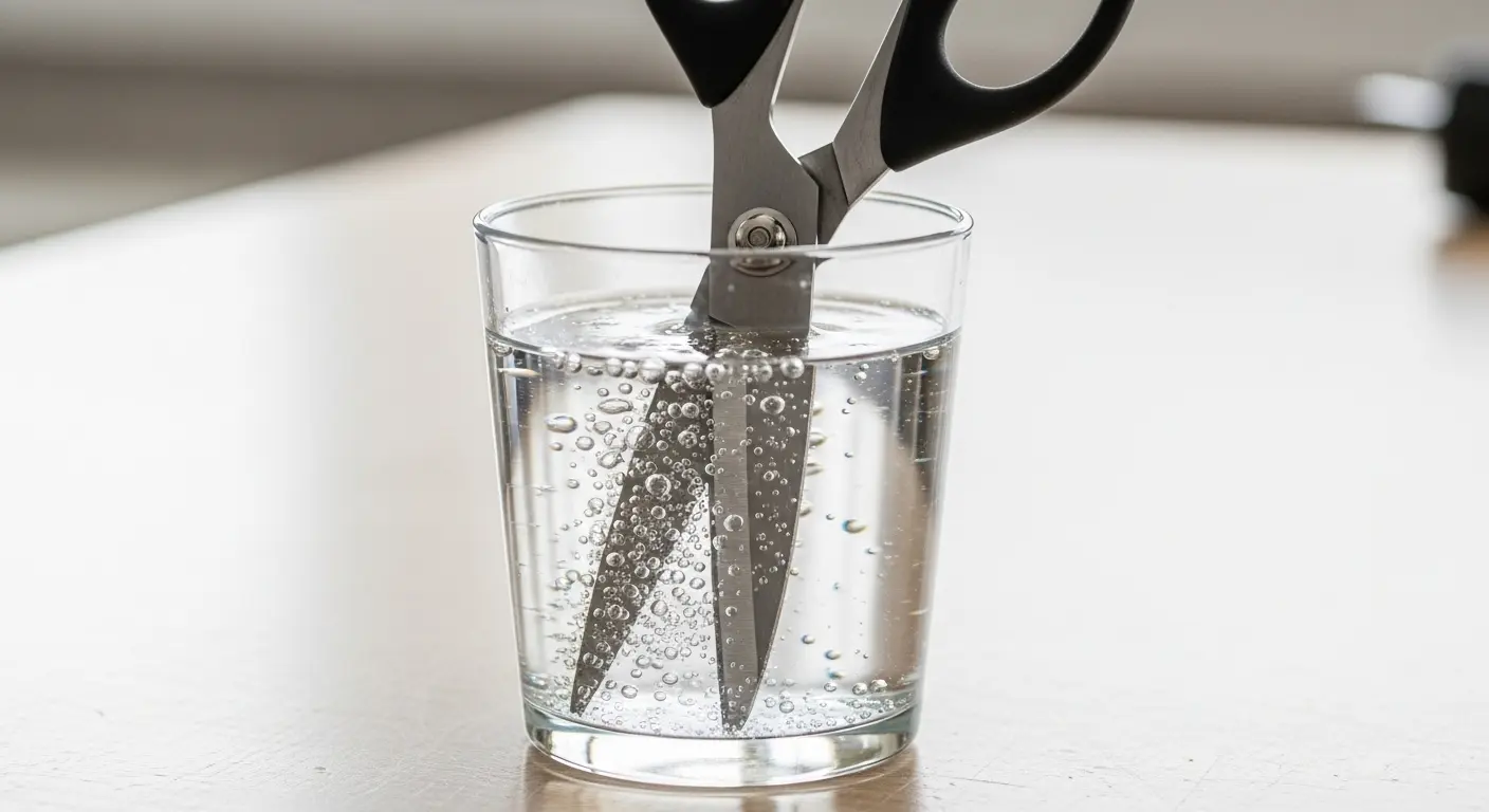 この消毒液に、使用するハサミやカッターの刃先を2分間ほど浸します。その後、水でよく洗い流し、キッチンペーパーなどで水気を拭き取れば消毒完了です。火や熱湯を使う消毒方法よりも安全で手軽なため、植物をカットする際は必ずこの一手間を習慣づけましょう。この作業を行うだけで、仕立て直しの成功率が格段に上がります。
