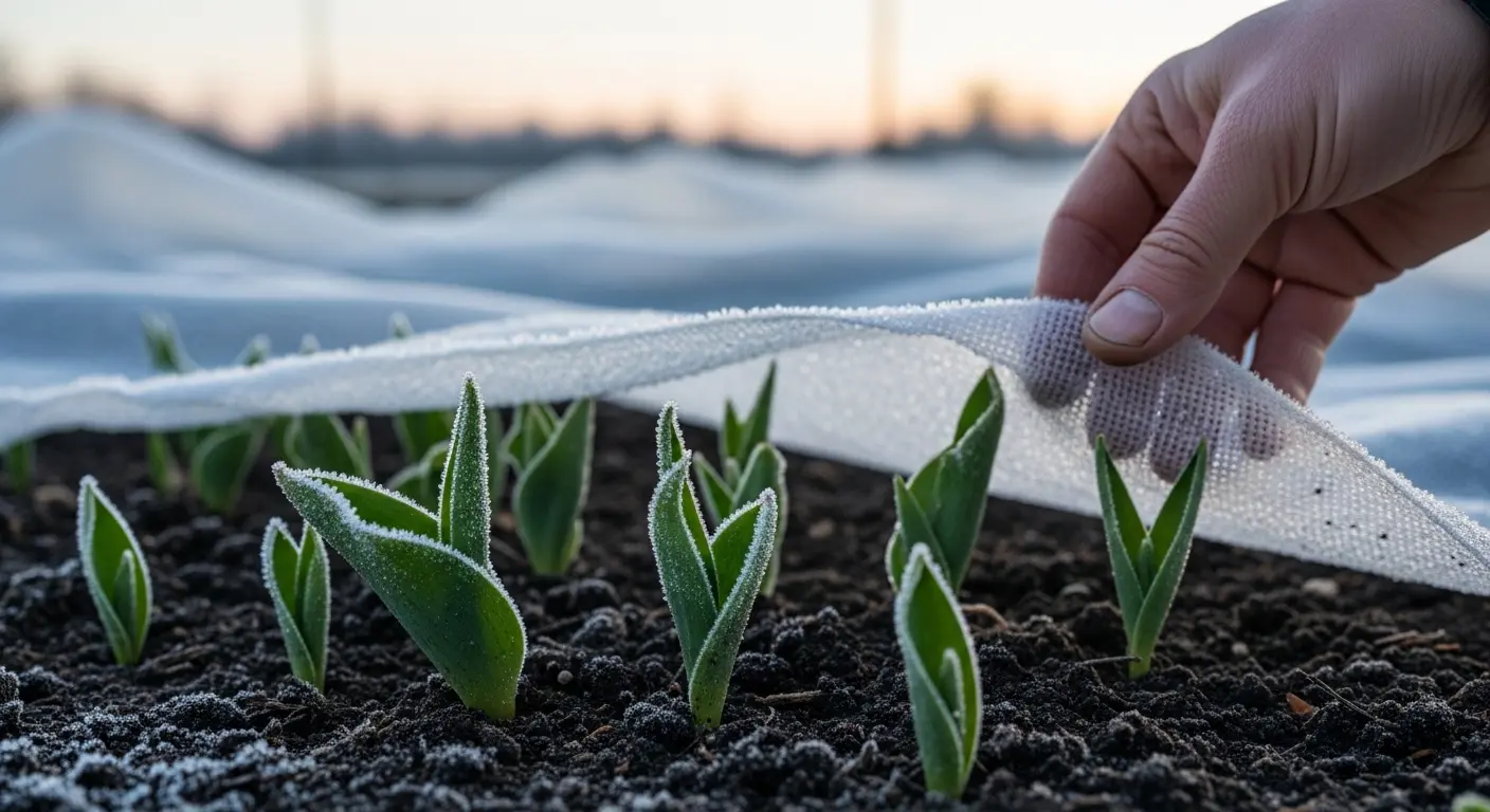 霜が降りるのは主に夜間から早朝です。そのため、夕方になったらシートをかけ、冷たい風や霜から芽を守ります。そして、朝になって日が昇り、凍結の心配がなくなったら、必ずシートを外してください。