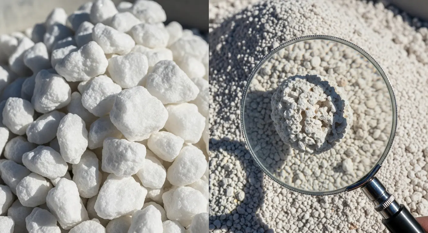 バーミキュライトと最もよく比較されるのが「パーライト」です。どちらも鉱物を高温処理した軽量な資材ですが、その性質は大きく異なります。そして、パーライトには2種類あることを知っておく必要があります。