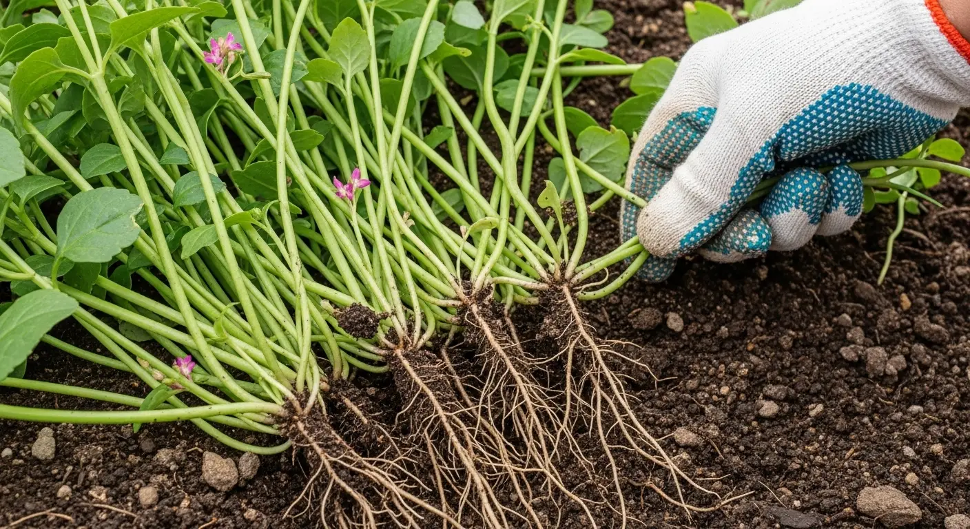 地中の根まで完全に掘り起こすことが根絶への近道です。手作業が困難な場合は除草剤も選択肢ですが、周囲への影響に配慮し、除去後の処分も徹底して再拡散を防ぎましょう。不安な方は鉢植えが賢明です。