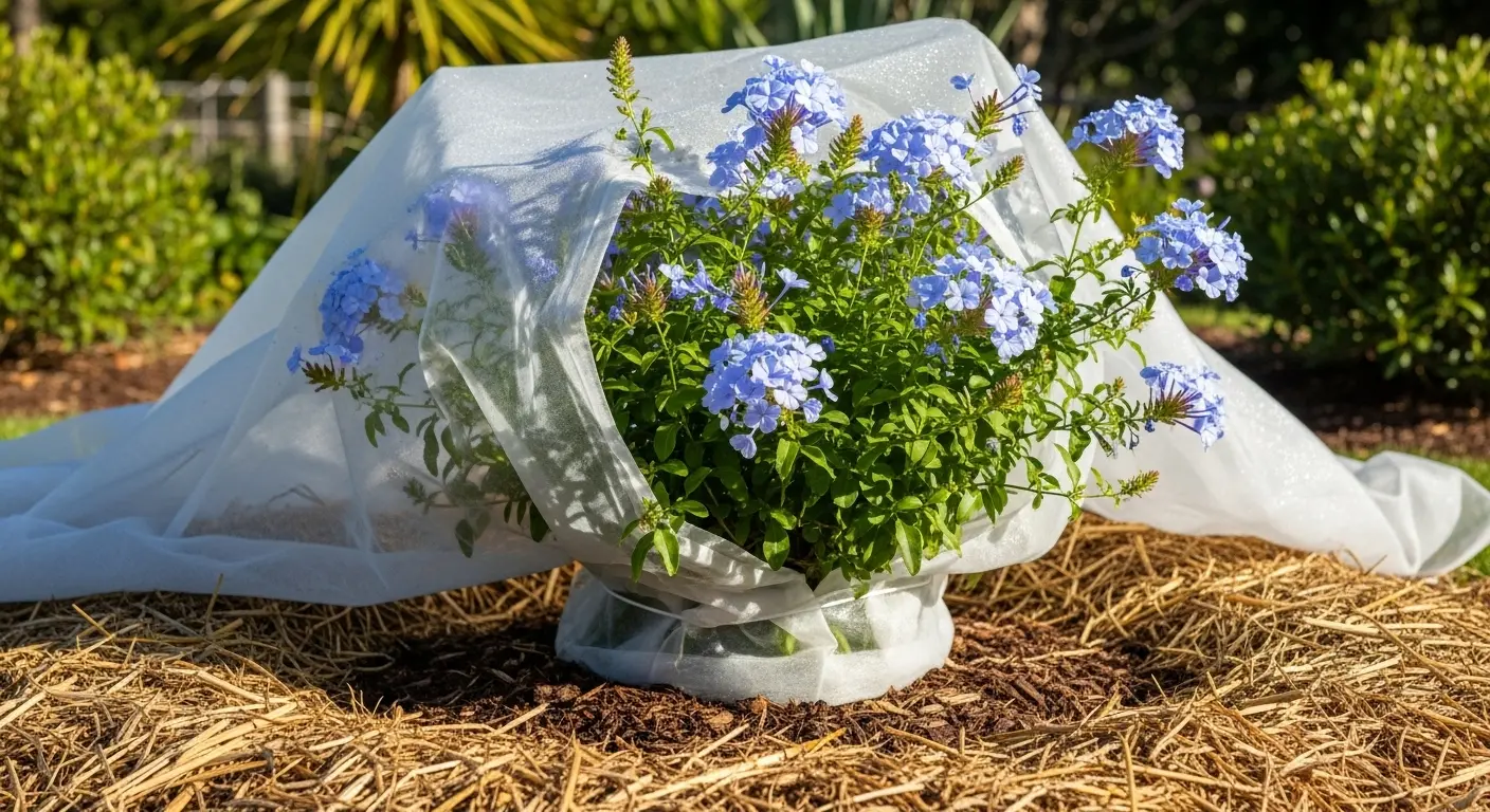 地植えでルリマツリを屋外で冬越しさせる際には、株元をワラや腐葉土で厚く覆ったり、不織布や寒冷紗で株全体を覆ったりする防寒対策が効果的です。