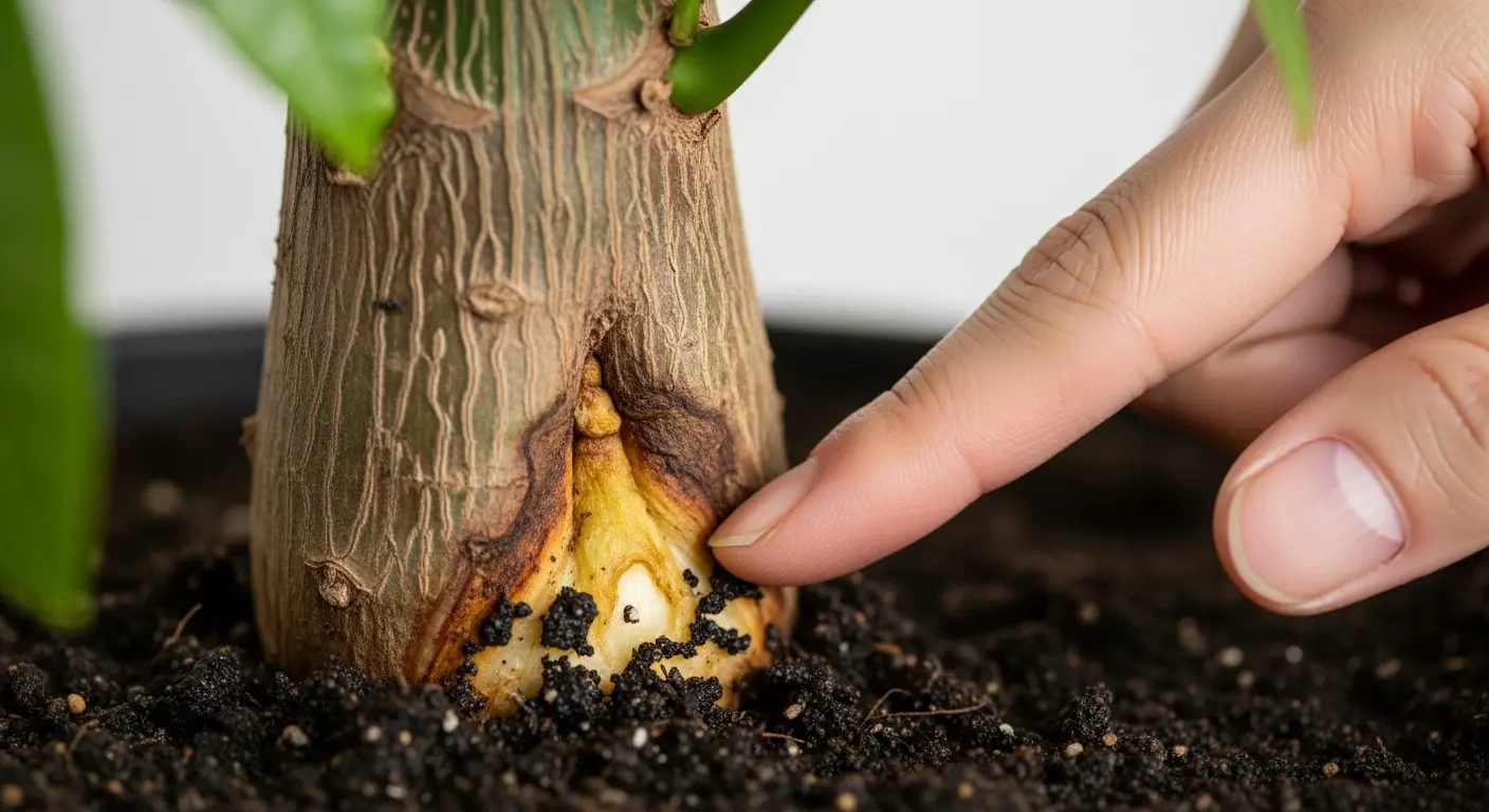 - 根腐れ特有のサインとして、土からの異臭やカビ、幹のブヨブヨ感がある
