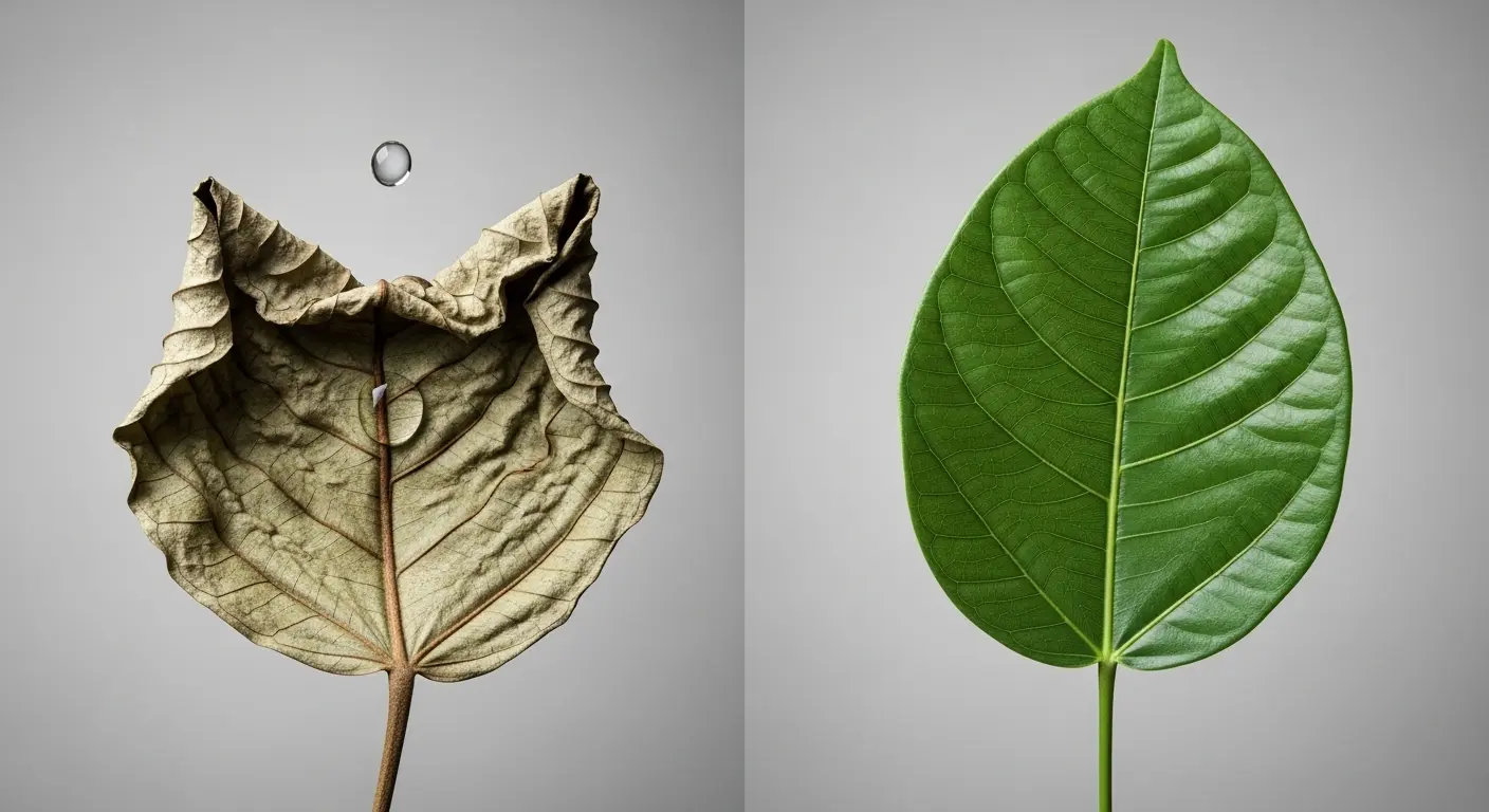 - 水不足による葉のシワと柔らかさの違い