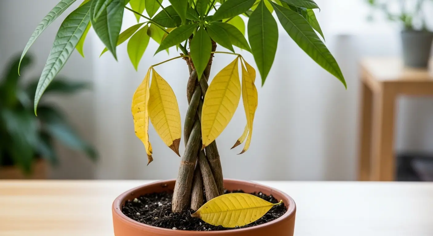 根腐れを起こすと、根が呼吸できずに壊死し、水を吸い上げるポンプの役割を果たせなくなります。その結果、土は湿っているのに植物体内は脱水状態となり、葉が柔らかくなるのです。根腐れ特有のサインとしては、葉が単に柔らかくなるだけでなく、少し黄色っぽく変色したり、透明がかったような色(水浸状)になったりします。これは、葉の内部の細胞が過剰な水分や腐敗菌の影響で崩壊している状態です。また、幹の根元を触ってみて、ブヨブヨと柔らかくなっている場合はかなり進行している証拠です。このブヨブヨ感は、内部組織が腐敗し液状化していることを示しており、早急な処置が求められます。