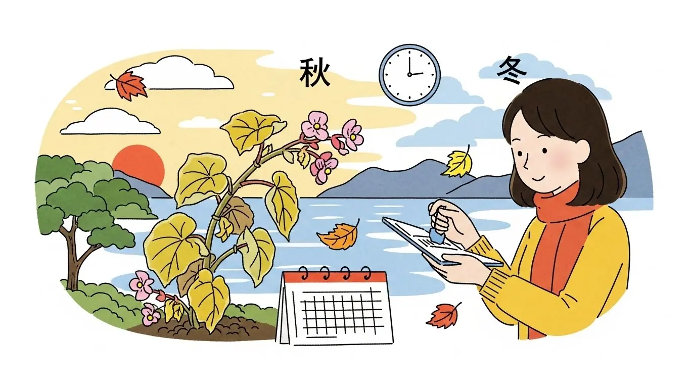 植物には、成長に適さない厳しい季節を乗り越えるために、活動を一時停止する「休眠」という生存戦略があります。球根ベゴニアの場合、日照時間が短くなり(短日)、気温が下がってくる秋の終わりから冬にかけてが、深い休眠に入る時期です。