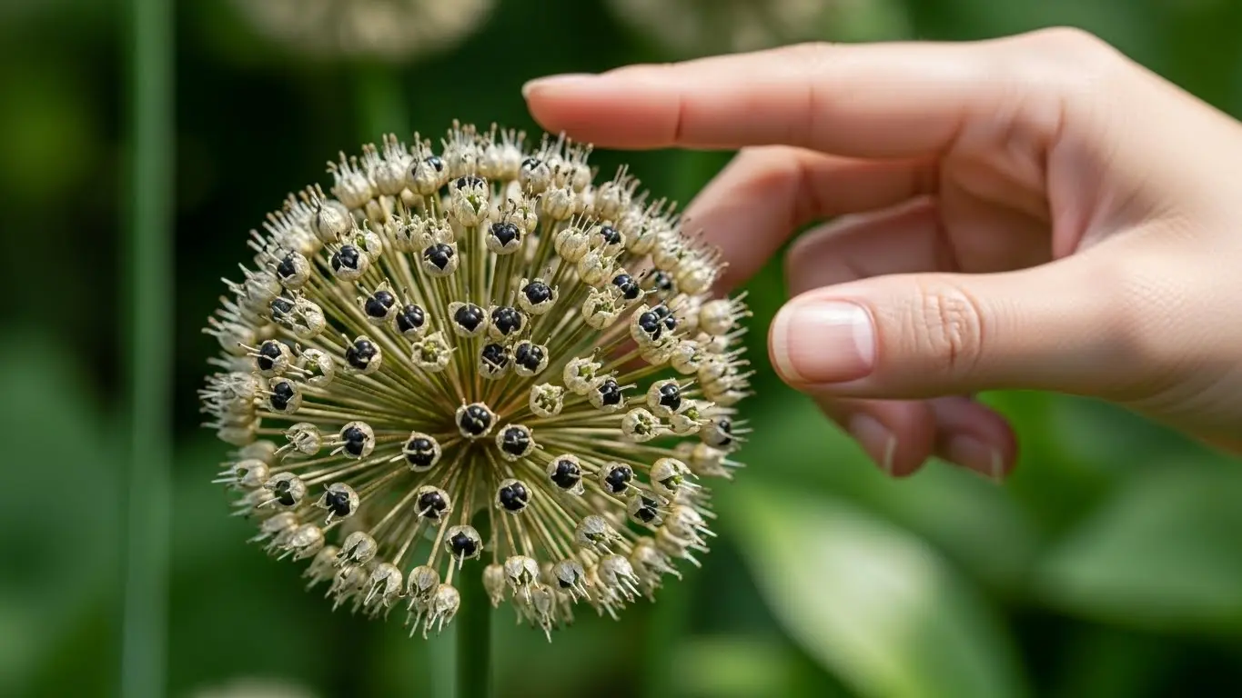 行者にんにくを増やすには、株分け(分球)よりも、種から育てる「実生(みしょう)栽培」の方が一度に大量に増やせるため効率的です。花が咲き終わると、7月頃に黒い小さな種が結実します。