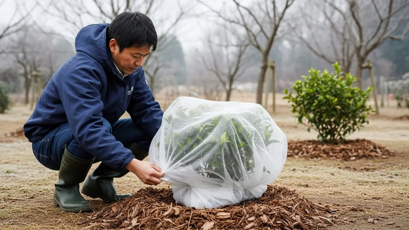 さらに、株全体を不織布や寒冷紗(かんれいしゃ)で覆う「トンネル掛け」や「こも巻き」を行うのも非常に効果的です。特に、北風が吹き抜けるような場所では、風上に防風ネットを設置するだけでも生存率が大きく変わります。