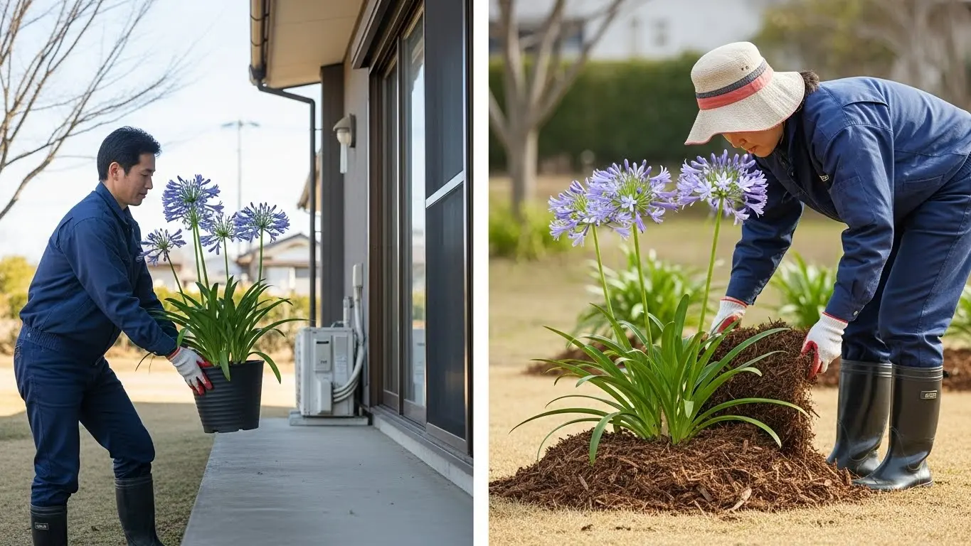 失敗しないアガパンサスの冬越し管理術!水やり・肥料・マルチングの実践