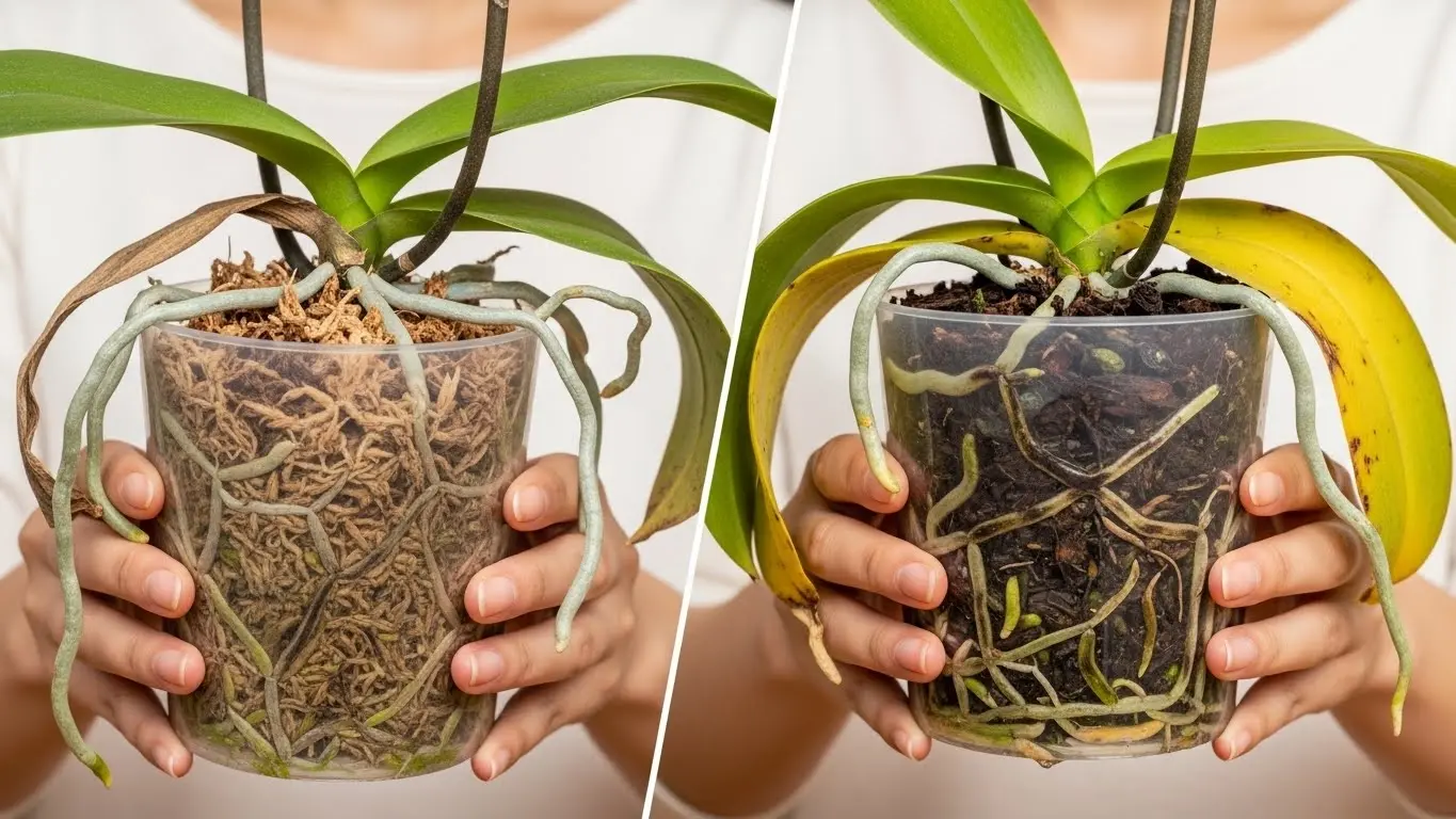 もし、健康な根がほとんど残っていない場合でも、茎の部分がしっかりしていれば復活の望みはあります。腐った部分を完全に取り除いたら、一回り小さな鉢(根の量に合わせたサイズ)に、新しい水苔を使って植え付けます。