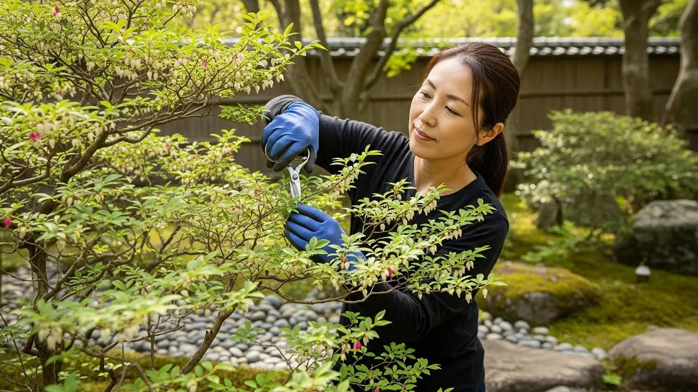 完全に放置すると大きくなりすぎるドウダンツツジですが、年に1回、30分程度の手入れを行うだけで、見違えるほど美しく、健康的に維持できます。それが「透かし剪定(すかしせんてい)」です。