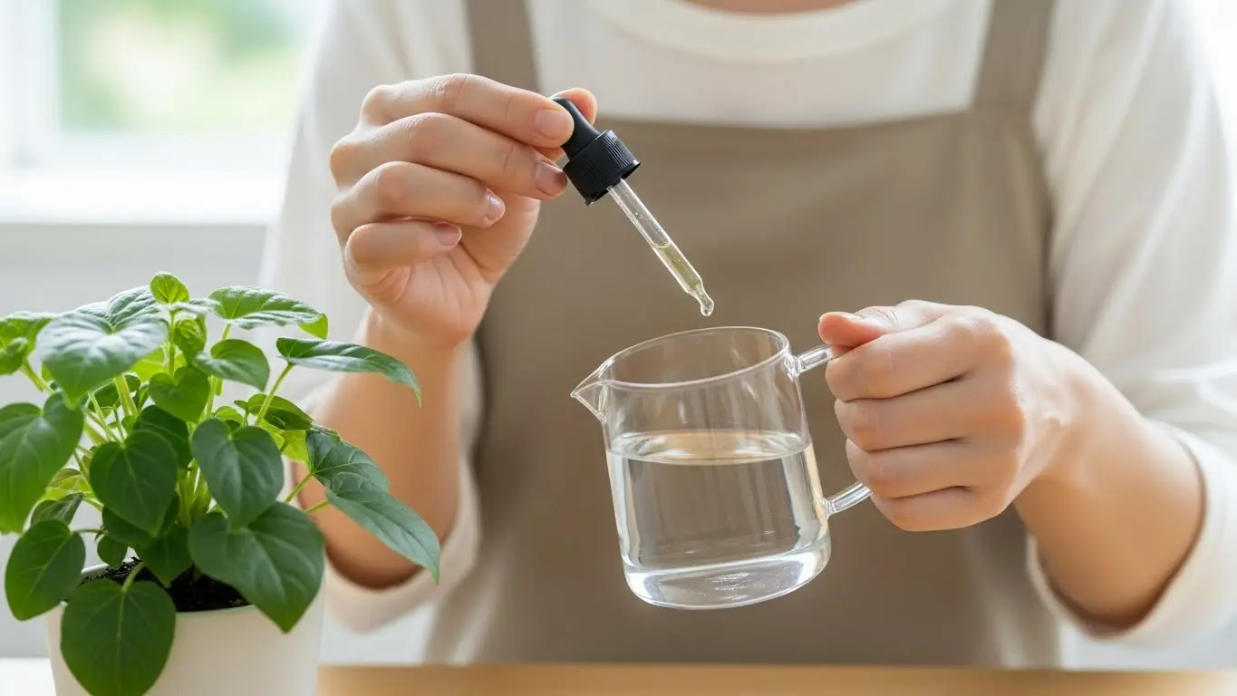 必ず「ハイドロカルチャー用」または「水耕栽培用」と記載された液体肥料を使用してください。これらは水に溶けた状態ですぐに根から吸収できる成分バランスになっています。