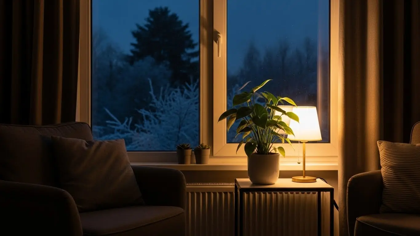 多くの観葉植物は10℃を下回ると成長が止まり、5℃以下になると細胞が壊死して枯れてしまいます。昼間は暖房で暖かくても、夜間や早朝に急激に冷え込む窓際は危険地帯です。夕方以降は、窓から離れた部屋の中央や、高い位置(冷気は床に溜まるため)に移動させてください。