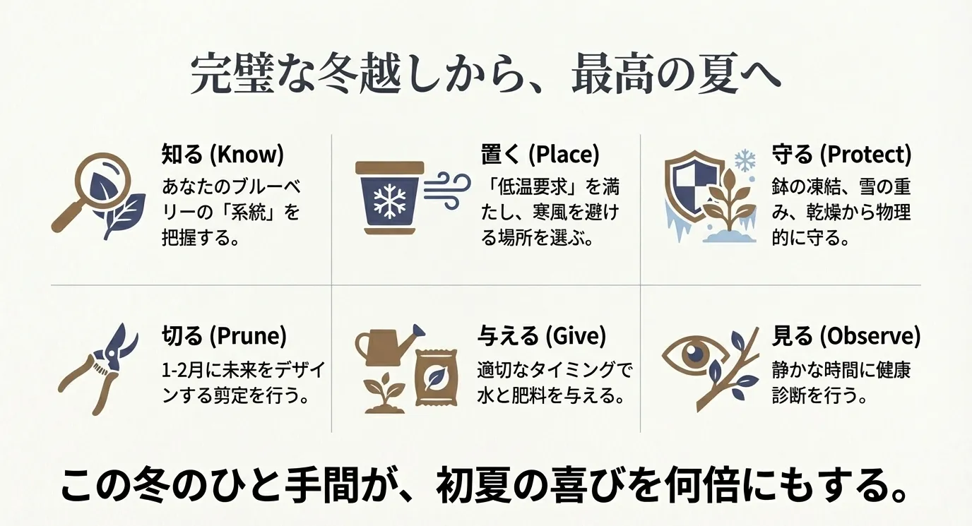 冬の寒さは、ブルーベリーにとって苦難ではなく、輝かしい春を迎えるための必要不可欠なステップであることを理解しておきましょう。