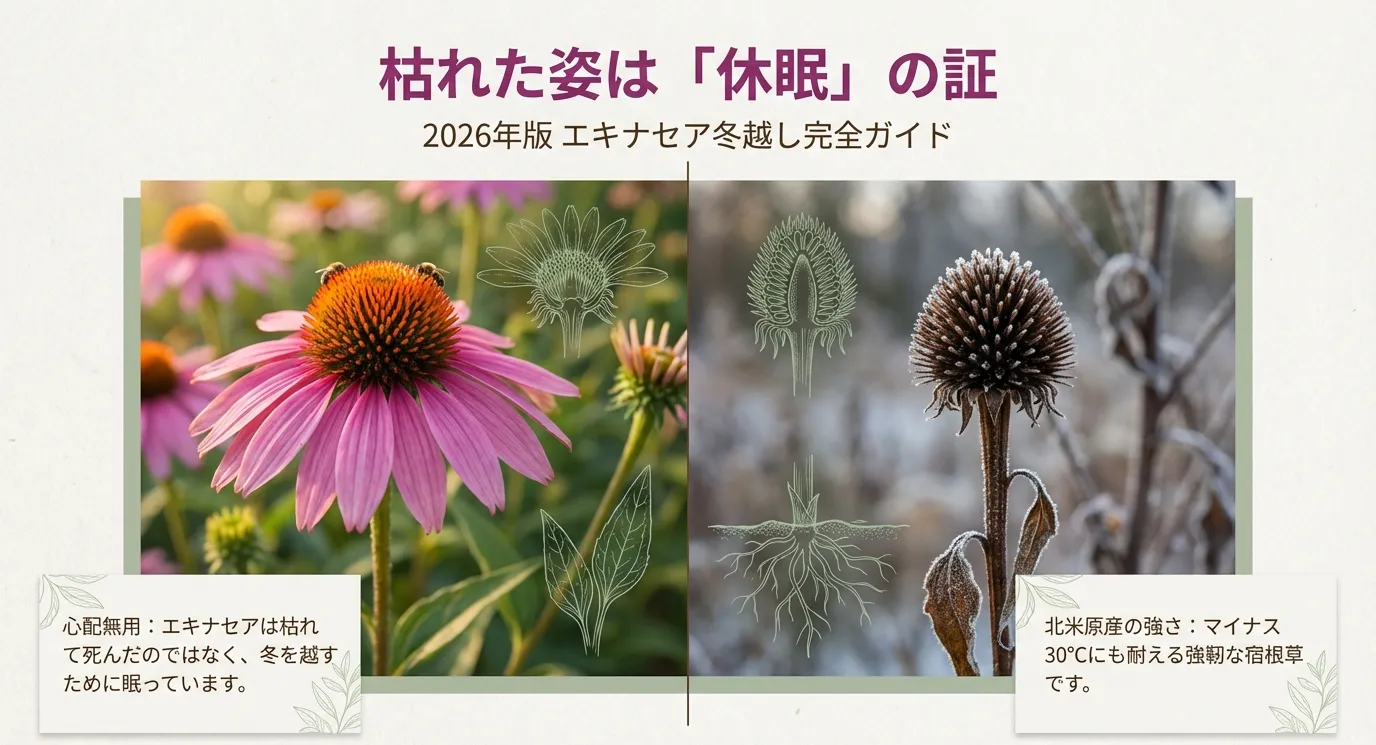 • エキナセアが冬に地上部を枯らして休眠する宿根草の性質を理解できる