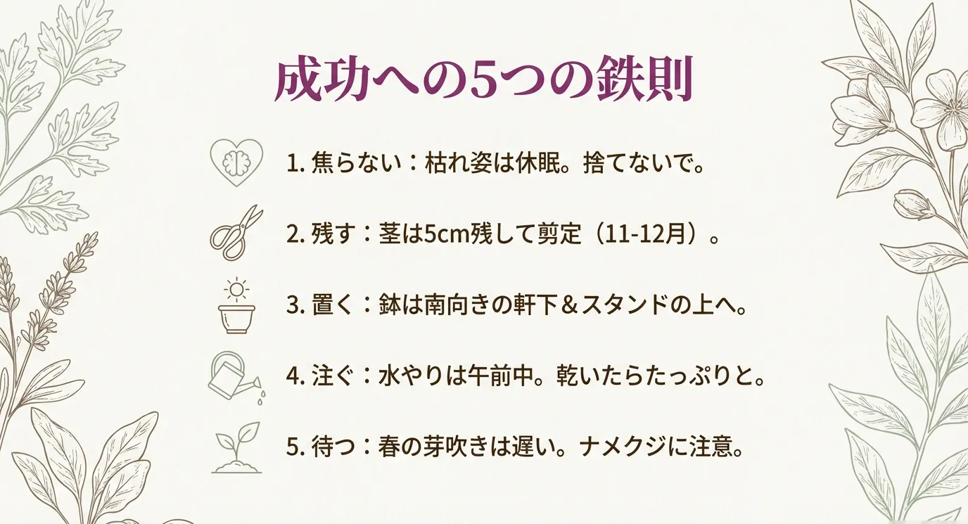 総括:エキナセアの冬越しは休眠の理解と適切な水管理が成功の鍵