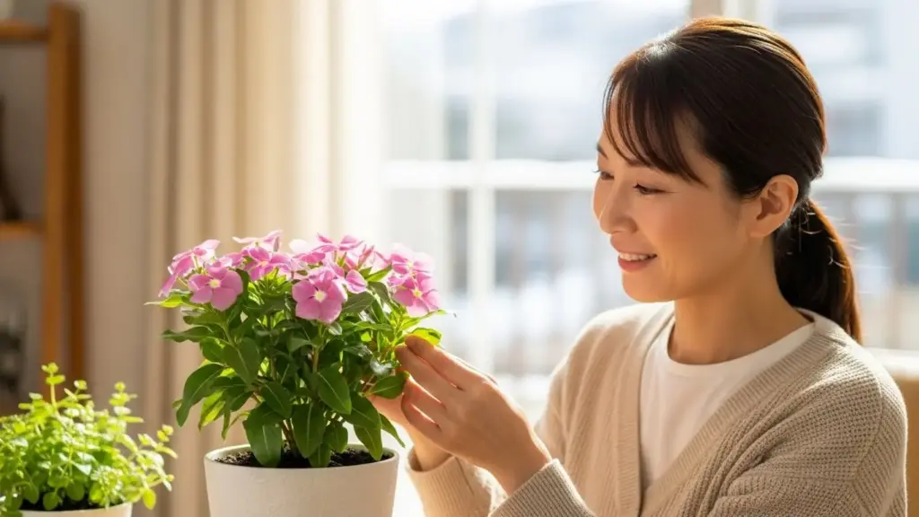 ニチニチソウの冬越し完全ガイド!室内管理や切り戻しのコツをプロが解説